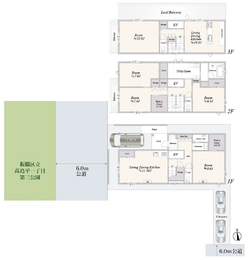 板橋区高島平1丁目 築浅×3台駐車可×二世帯住宅にも 3階建鉄骨造の基本情報
