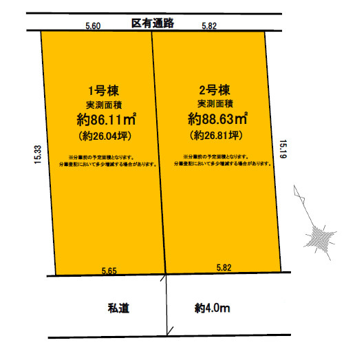 練馬区貫井2丁目 建築条件なし 南道路の限定2区画の基本情報
