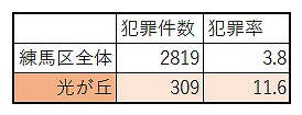 犯罪率は11.6と、練馬区の平均3.8を大きく上回っています。
