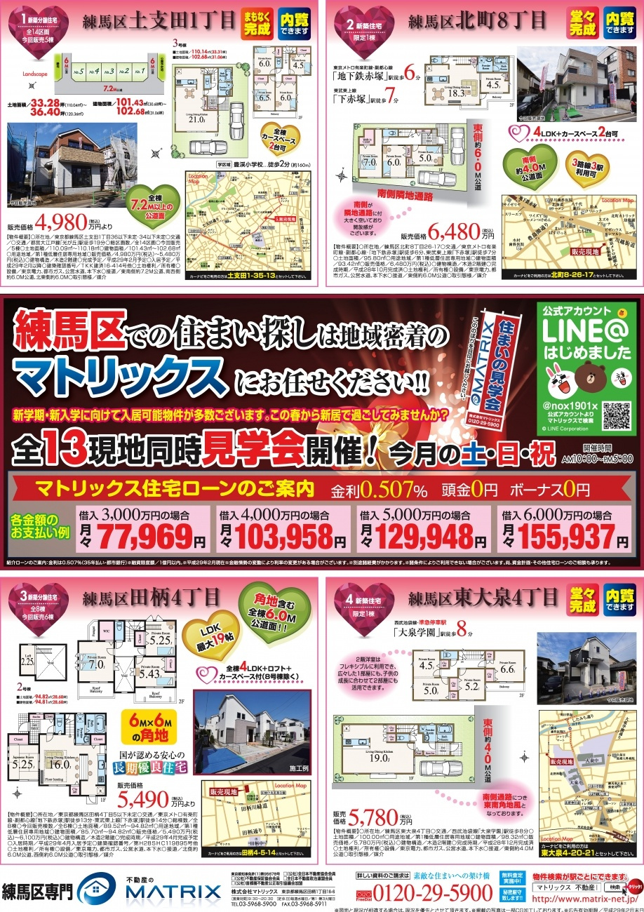 【2月】練馬区に強いマトリックスのご案内です!! 2017.02.02 筆者 NAKANE 中根 練馬区、板橋区地域の物件のご紹介はお任せください。 未公開物件多数ございますのでピッタリの物件をご紹介させていただきます。 ご案内などもご希望の場所でお待ちあわせ出来ますのでお気軽にご連絡くださいませ。 内覧希望の方はこちら・ローンのご相談もお気軽に!! next 【10月】中丸町 魅力的な邸宅 最終1棟 2016.10.21